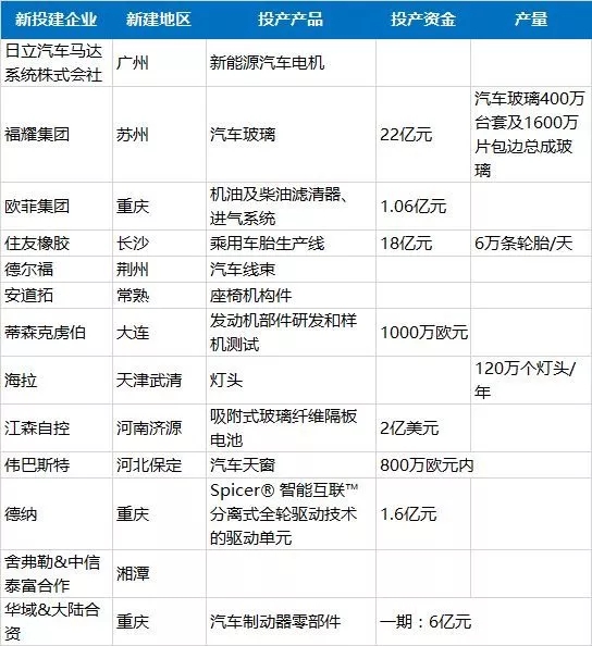 In 2017 the mainstream auto parts enterprises built new factories in China