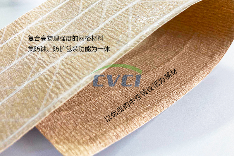加網復合紙以優(yōu)質的中性皺紋紙為基材,按結構和特性分為皺紋加網復合紙和阻隔型皺紋加網復合紙。產品可添加氣相緩蝕劑,制作成加網型復合氣相防銹紙。