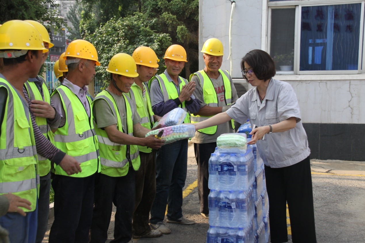2018年6月12日下午,沈陽防銹向皇姑區(qū)環(huán)衛(wèi)及市水務(wù)集團一線工作者們進行慰問,并捐贈了一批礦泉水、毛巾和工作手套。沈陽防銹總經(jīng)理劉艷霞、皇姑區(qū)首府城管一所所長周雪梅、副所長白冰、市水務(wù)集團施工單位領(lǐng)導(dǎo)共同參加了慰問捐贈活動。